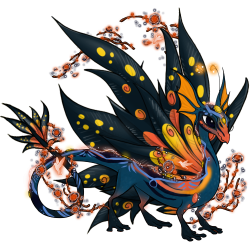 lucky runes (have carried), tri-colour (up for breeding), lubber spots (have), cosmic moth antennae, lunar garb (up for breeding), forest spirit wings |