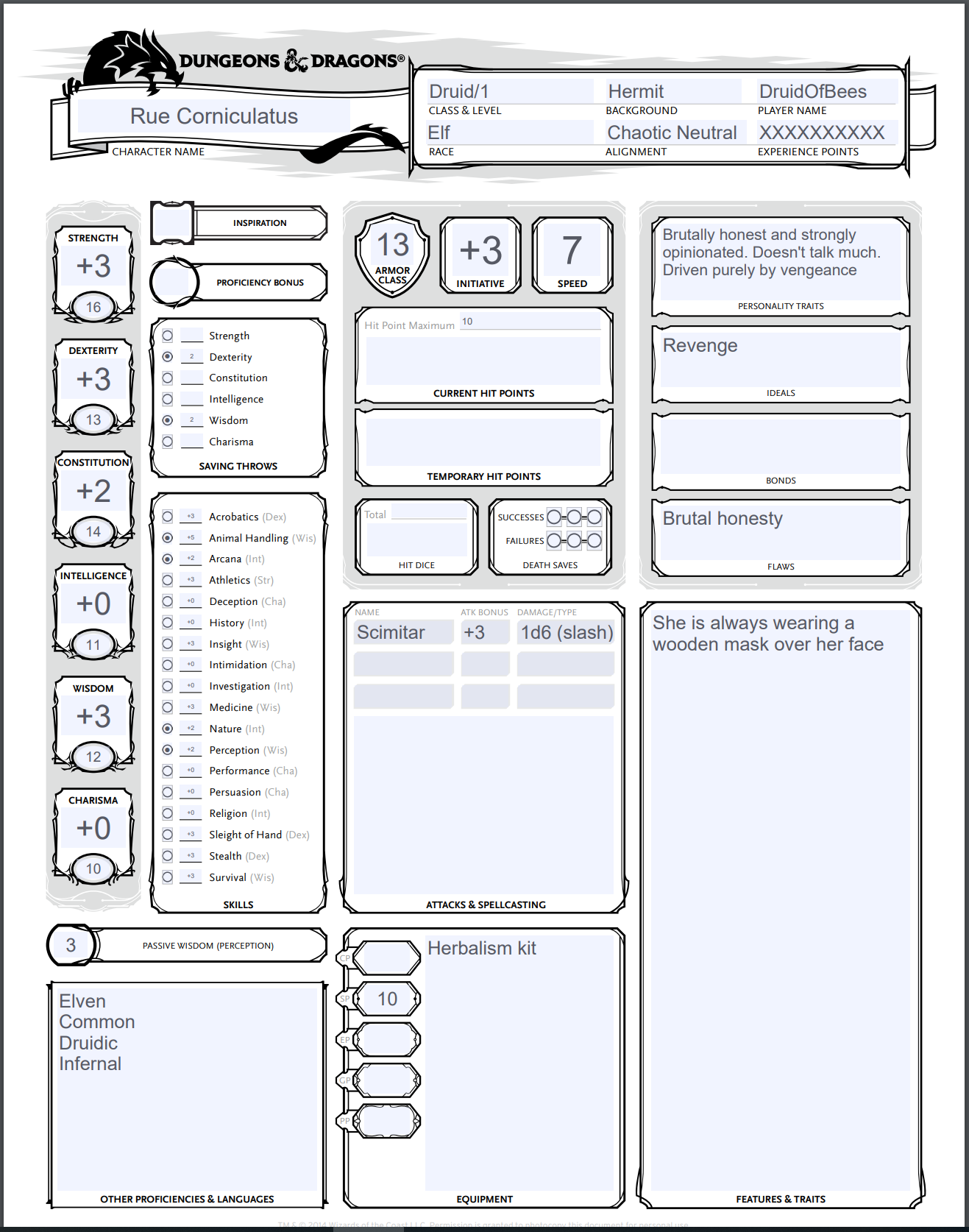 I wanna keep my little char's backstory kinda secret from the rest of the party, so I'll pm you anything you'll need to know or anything I'll need permission for