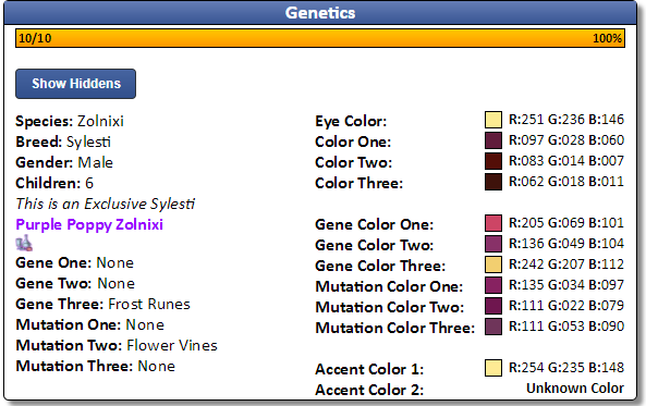 she is a PB springtime zolnixi, and if you look far enough back through her linage, the first generation don't have the normal stars to indicate a themed pet, needless to say PB pre-tagged pets are hard to get, and I'm not actually expecting to get one... it's my impossible to grant wish