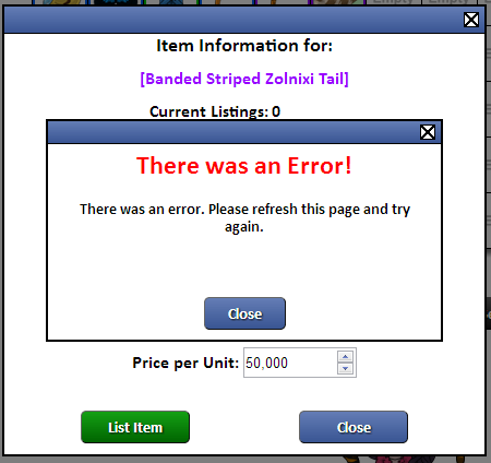 http://i1307.photobucket.com/albums/s600/SengokuBasaraNut/ErrorSylestia_zpsd49c8888.png That is the message I get. But I just tried it in the other and I got this: "There was an Error! There was an error. Please refresh this page and try again.2"
