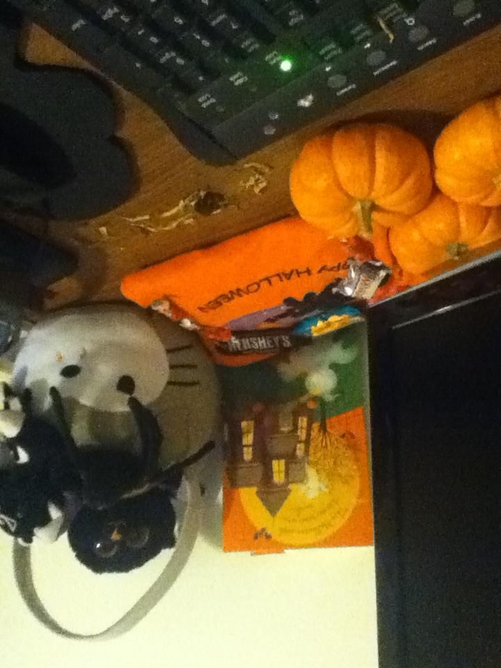 I just found the mini pumpkins at the store, and since im not in charge of the house decor for Halloween, I decided to decorate my desk! How do you decorate? >3>