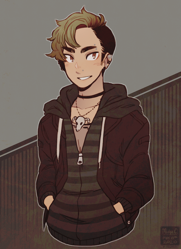 Personality: Twigg tends to be very observant and lets facts speak for themselves. He likes cracking -terrible- jokes and play on words to try and get one laugh. They have seen a lot of gore and death in their life and, honestly, its not going to bother them any more. They has a very strong sense of loyalty to the only friends they admits to having - the band. He does not scare easily. He can get very distant but he tries his best to keep being extraverted like he normally is. They can become flirtatious and gregarious when left unattended for too long.